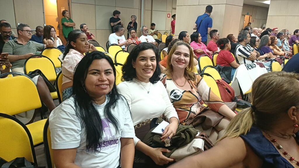 As diretoras do SASEC, Naylma Maia, Danielle Vidal e Juliana Maranhão, estiveram presentes nesta sexta-feira (27) no Encontro de Mulheres, realizado durante o IV Congresso da Intersindical – Central da Classe Trabalhadora, em São Paulo. A atividade reuniu lideranças sindicais e militantes de diversas regiões do país em um espaço de escuta, troca de experiências e construção coletiva.