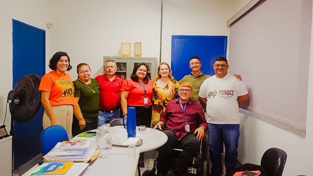 Nesta quarta-feira, 1º de outubro, as diretoras Naylma Maia e Juliana Maranhão, do SASEC, e os diretores Claudemi Campos e Antônio Walleson, do PSINDICE, estiveram em reunião com Anízio, Rosângela e Girliane de Almeida Dantas, Diretora da Diretoria de Educação Inclusiva e de Mediação da Relação Psicossocial (DIRP – SEDUC), representantes da Secretaria de Educação de Maracanaú.