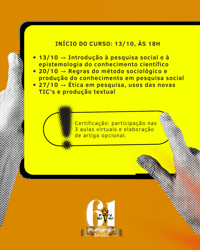 O curso tem como objetivo ampliar os conhecimentos em epistemologia, método científico, ética em pesquisa e uso das tecnologias da informação e comunicação (TICs), oferecendo aos/às participantes ferramentas práticas para aprimorar sua trajetória acadêmica e profissional.